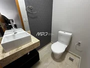 - Banheiros com armários, bancada em granito e box em vidro.
